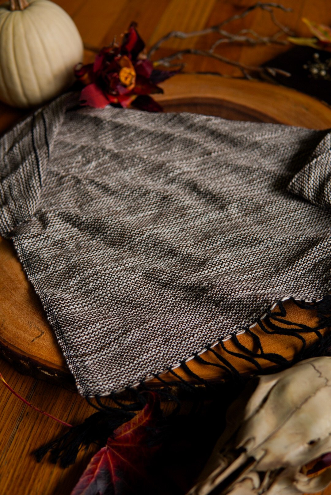 This kerchief has been handwoven on a Saori loom using cotton and linen threads. Soft and versatile, this piece is one of a kind with a beaded and braided fringe.